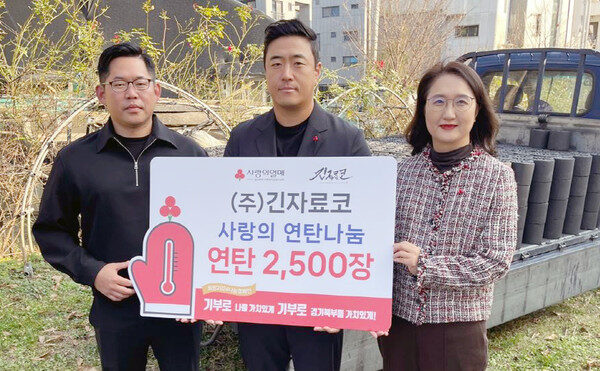 (주)긴자료코, 취약계층에 연탄 2500장 기부
